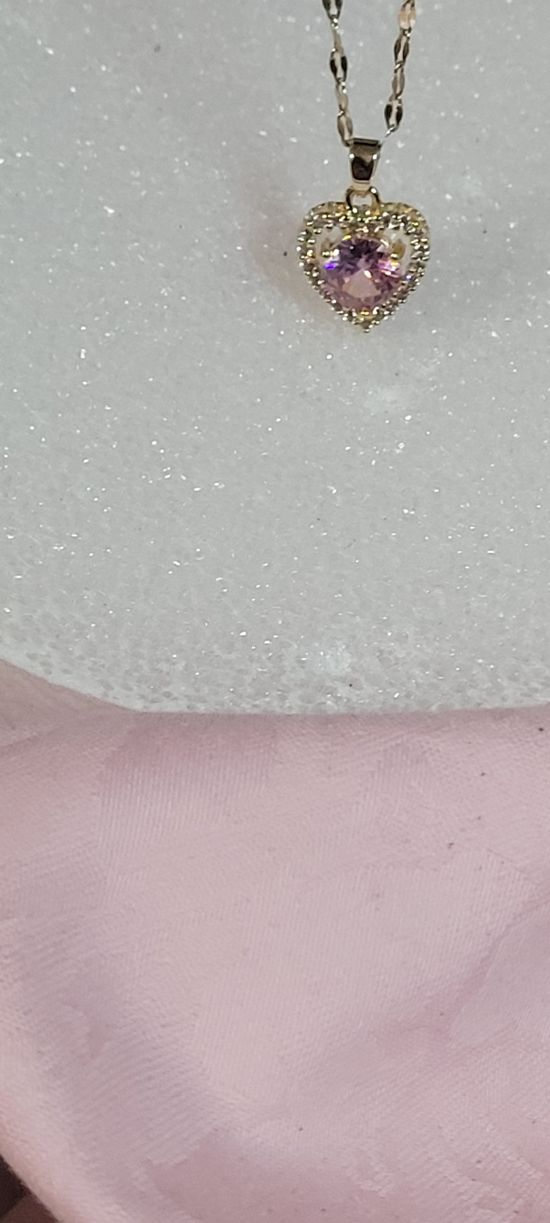 18k Gold plated Heart Design Pink CZ Stone Charm Necklace