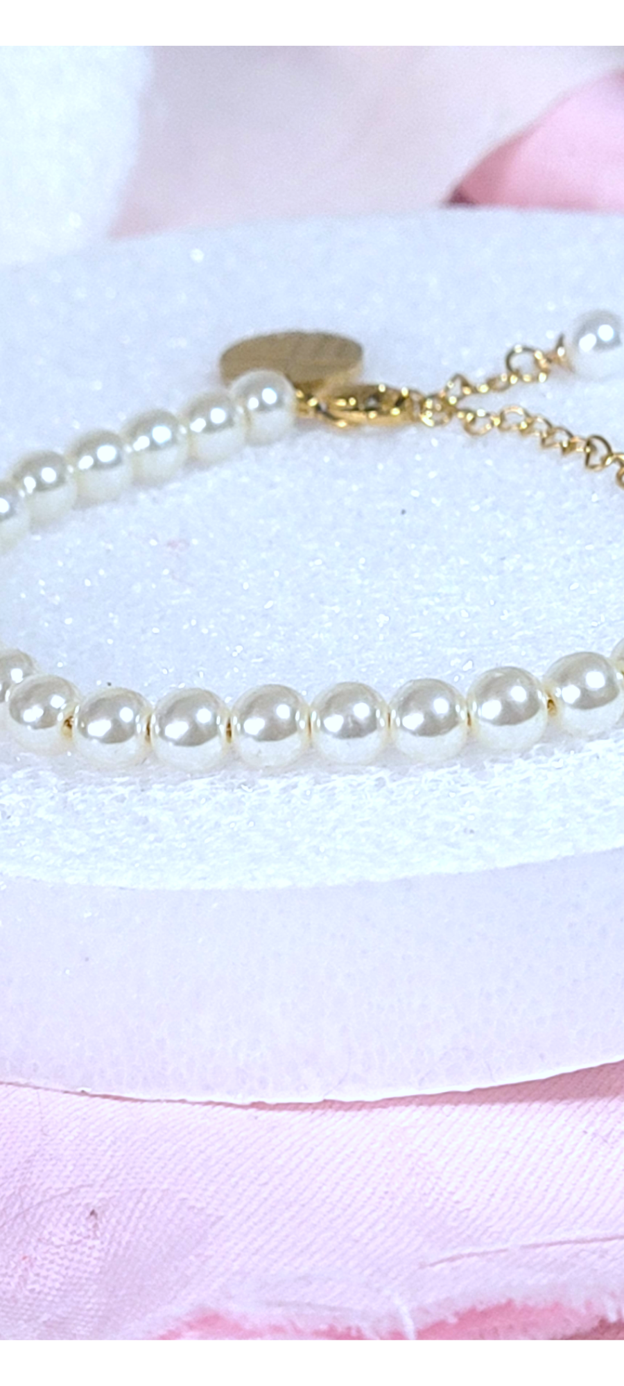 Add a touch of elegance to your outfit with our Faux Pearl Stainless Steel Bracelet. This versatile piece, featuring imitation pearls and gold plating, is perfect for everyday wear or for adding a special touch to any occasion. A must-have for any jewelry collection!