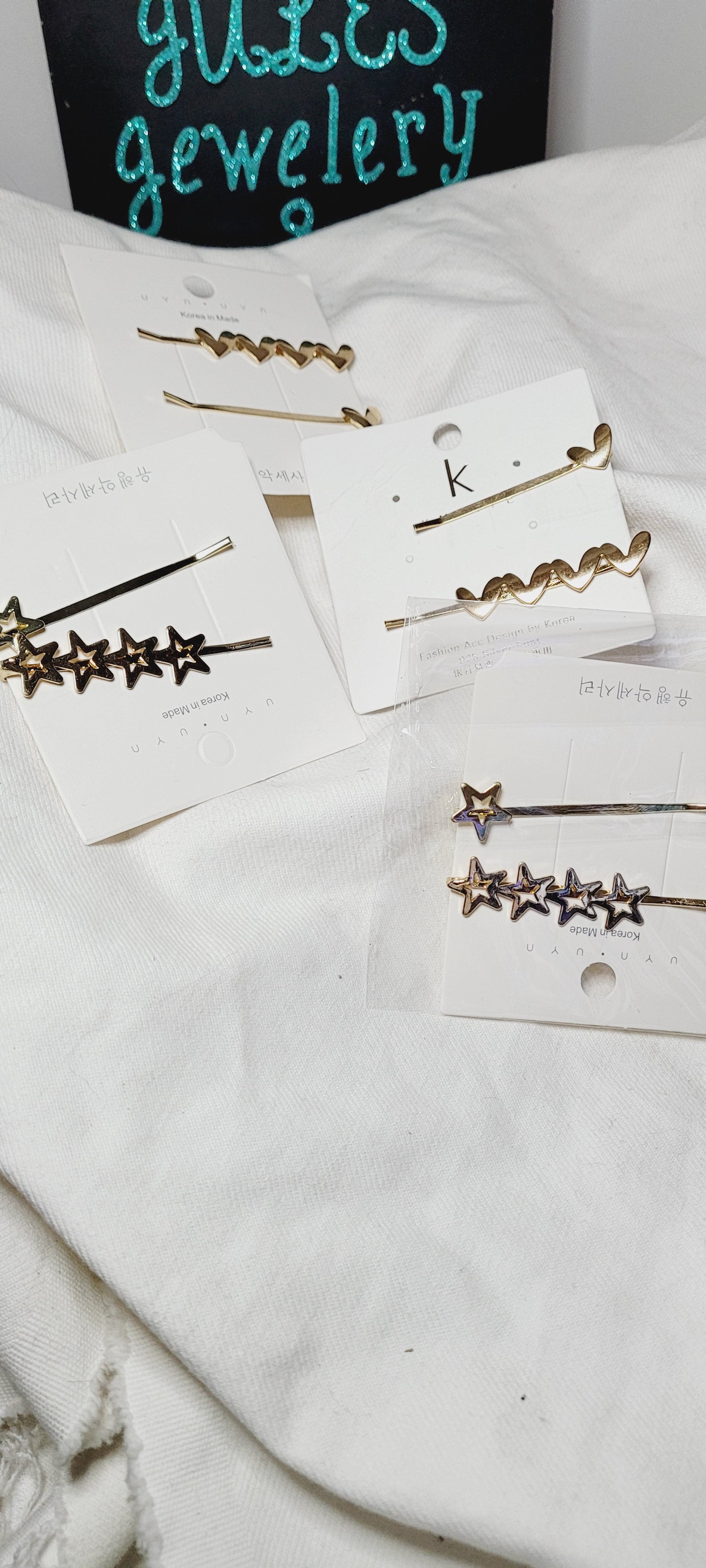 These elegant gold hair pins are fashionable and perfect for all occasions, choose from star design or heart design.