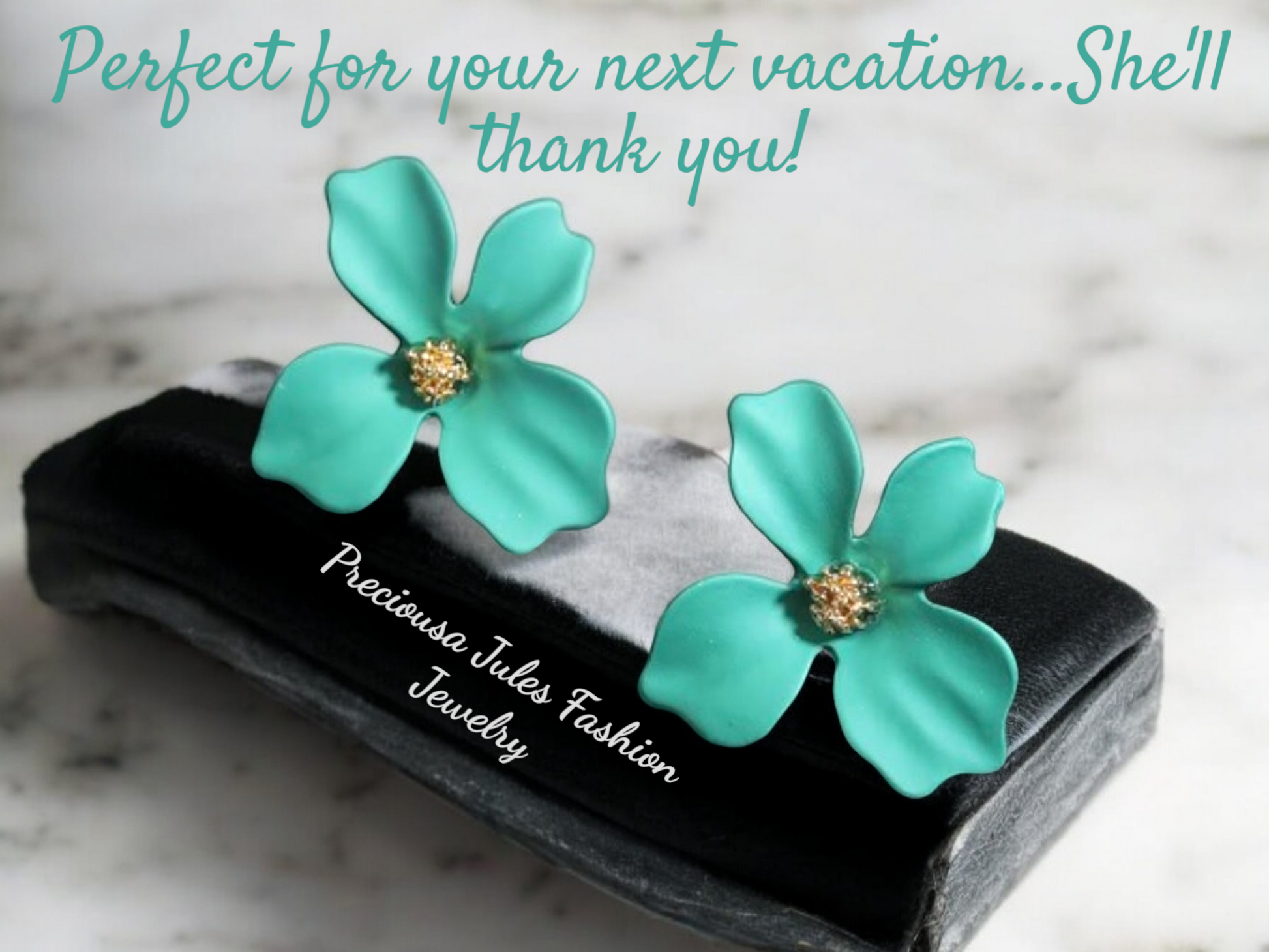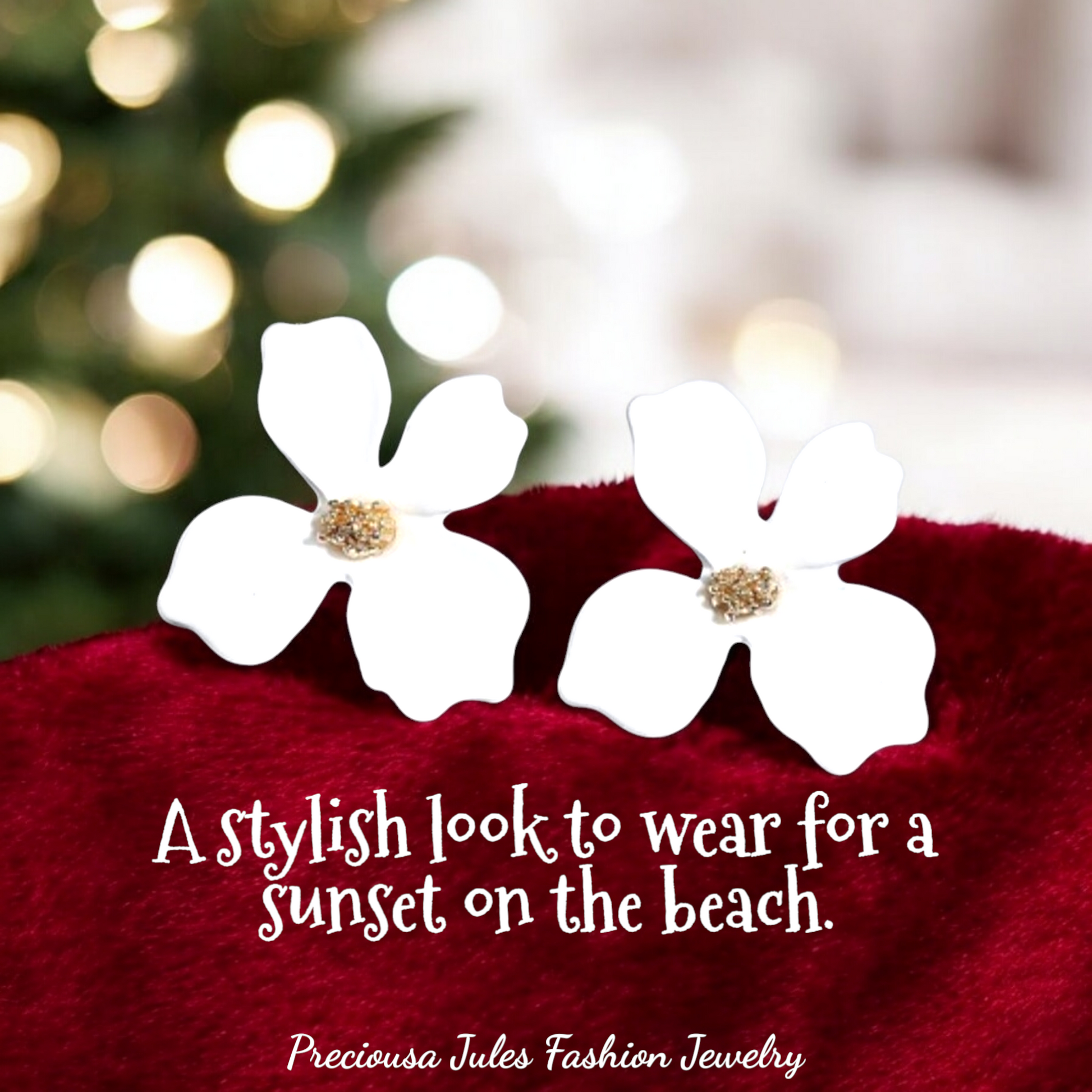These adorable, sweet flower shaped stud earrings are perfect for all occasions. They're small and light weight, choose from two colors green and white.Add some unique style to your accessories collection with our New Glam Sweet flower stud earrings! Hand-painted and inspired by Bohemian and Hawaiian designs, these lightweight earrings are made with durable high-quality alloy material. Perfect for gifting to loved ones, our earrings go perfect with any look.