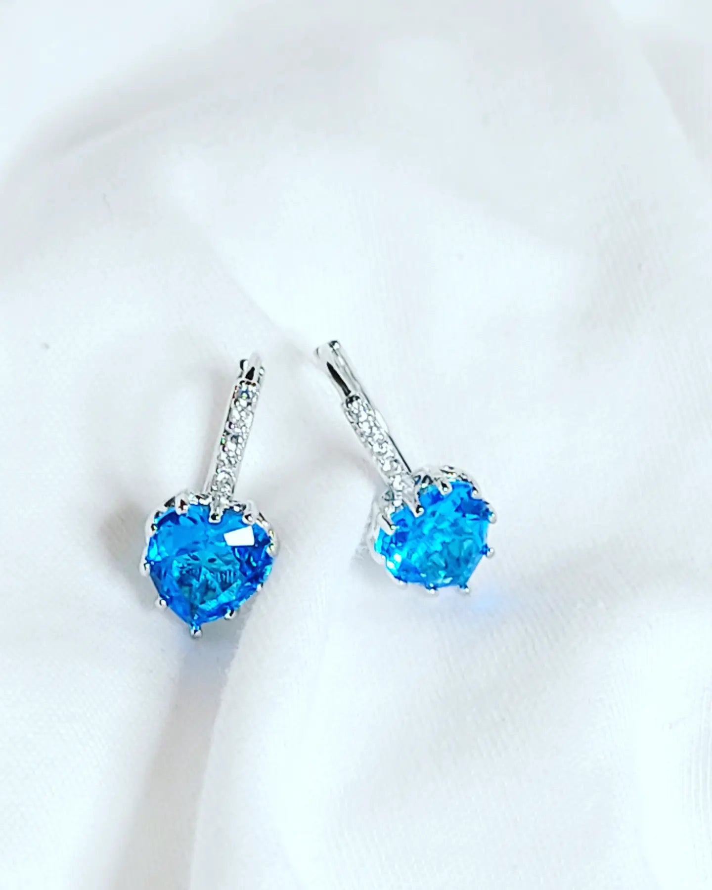 Dazzle with elegance and beauty with our Love Heart Rhinestone Earrings. Crafted with white Gold Plated Alloy and inlaid with sparkling Rhinestones,with different color options these hoop earrings feature a heart-shaped pendant and leverback design. Perfect for daily wear, parties, or as a thoughtful gift.
