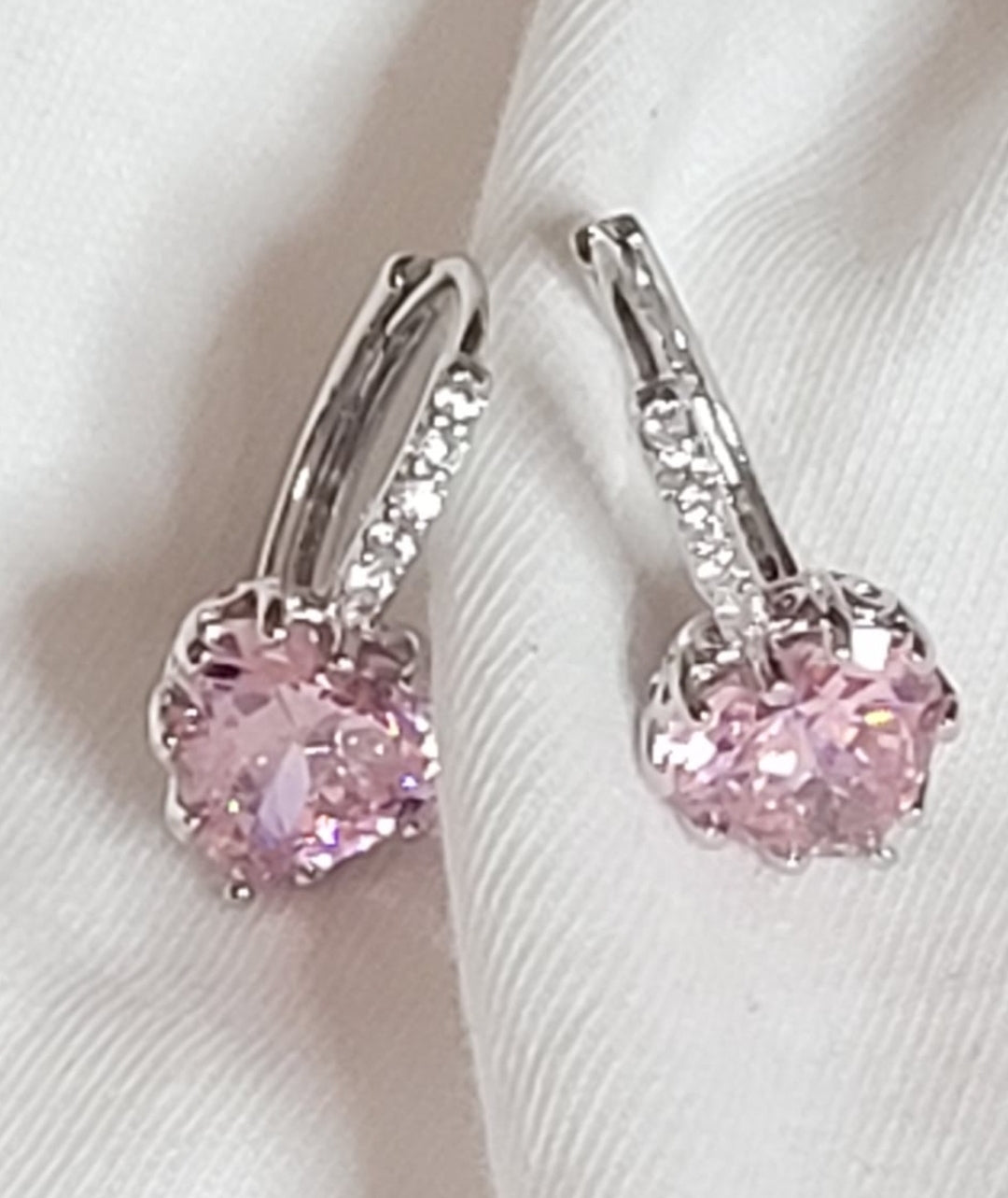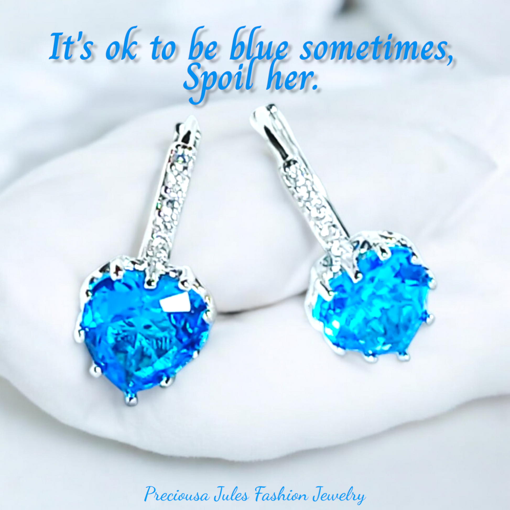 Women's Luxury Love Heart Rhinestone white Gold Plated Leverback drop Earrings